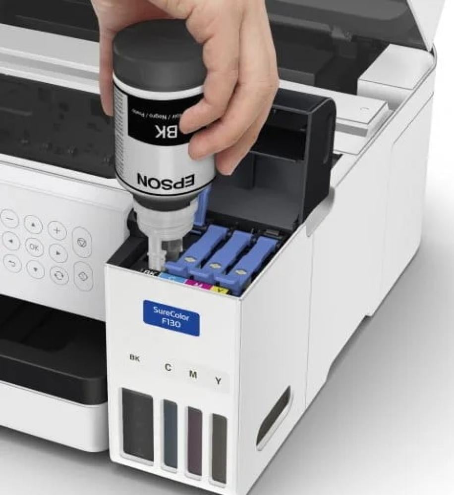توفر طابعة SC-F100 سرعة في الطباعة وتكلفة إجمالية منخفضة للملكية للشركات الصغيرة، ولا يتطلب أي خبرة متخصصة في الإعداد أو التشغيل أو الصيانة. تُوفر عبوات الحبر سعة 140 مل بديلاً أقل تكلفةً للأحبار التقليدية، وتُمكّن الشركات من مواصلة العمل لفترات أطول، مما يُقلل من فترات التوقف.